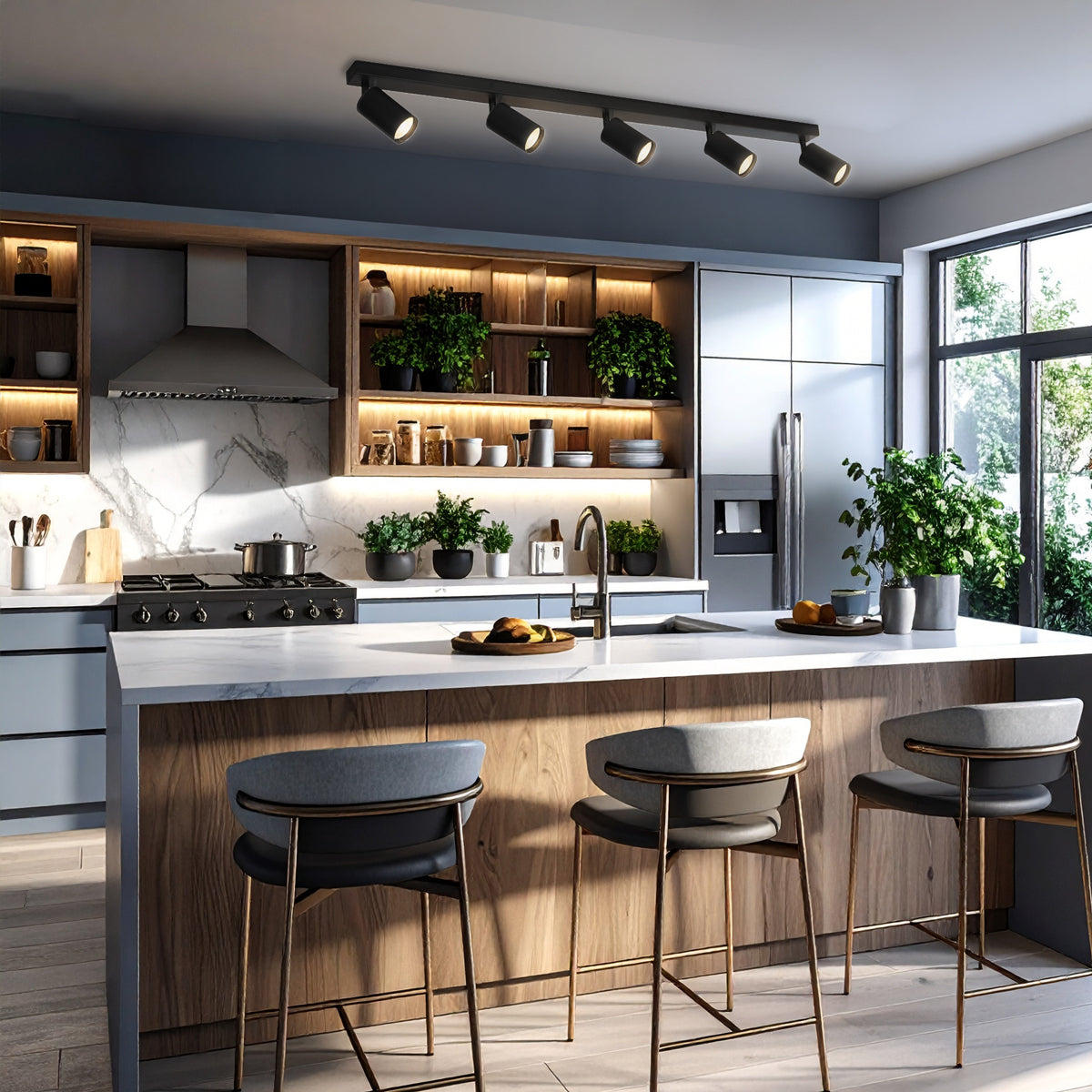 The Picard Spot Light is your go-to for sleek, modern indoor lighting with versatility to match any space. Whether you’re highlighting artwork, creating a cozy reading nook, or simply adding style to your hallway or kitchen, the Picard gets the job done beautifully. Available in 1 to 5 light options, this fixture lets you tailor the lighting to your needs. Choose between black or white finishes, both with a stylish sand texture that adds a subtle touch of sophistication. Each spotlight includes a GU10 globe and features 3CCT technology, allowing you to switch between 3000K warm white, 4000K neutral white, or 5000K cool white to suit your mood or activity. Each spotlight also features a 360-degree rotatable head, giving you full flexibility to direct light exactly where it’s needed most. Whether you’re after soft ambient lighting or crisp task lighting, the Picard adapts seamlessly—making it perfect for living rooms, kitchens, hallways, or even home offices.